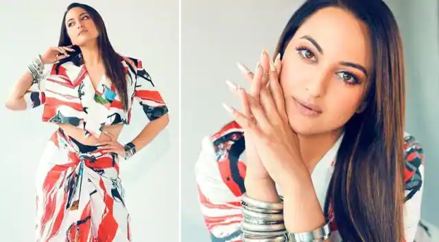 सोनाक्षी सिन्हा की इस आउटफिट में क्रॉप्ड ब्लेज़र और टाई-अप स्कर्ट का कॉम्बिनेशन था।