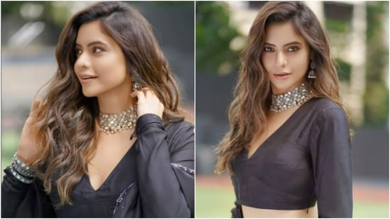 Aamna looked every bit stunning in a black lehenga as she posed for the outdoor photoshoot.