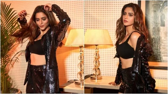Aamna decked up in a black bra and a shimmery black pair of shorts with sparling fabric.