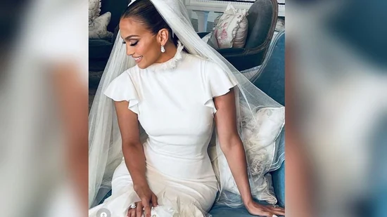 The caption stated, "First peek at my wedding looks at OnTheJLo.com." It goes without saying that she looked ethereal in the close-up photo she shared of herself as a bride.