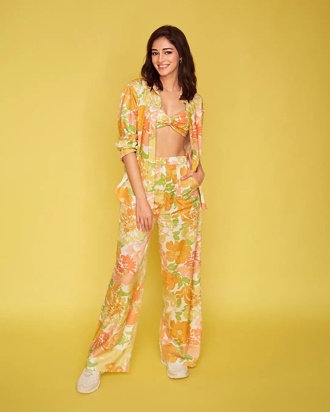 Ananya Panday upgrades her summer wardrobe in this easy-breezy three-piece floral multi-coloured set.