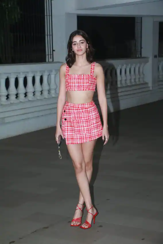 Ananya Pandey wore red color heels with this short and crop top dress, which was very pleasing to her.