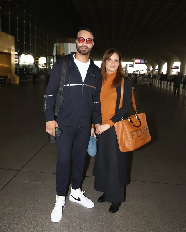 Recently Ankita and Vicky were seen at the Mumbai airport. Where both are seen matching in the color of the clothes.