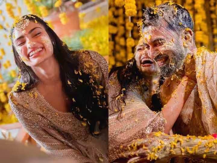केएल राहुल और अथिया शेट्टी की हल्दी सेरेमनी की खूबसूरत तस्वीरें सामने आ गई हैं. इन तस्वीरों में ये दोनों एक दूसरे के प्यार में डूबे नजर आ रहे हैं.