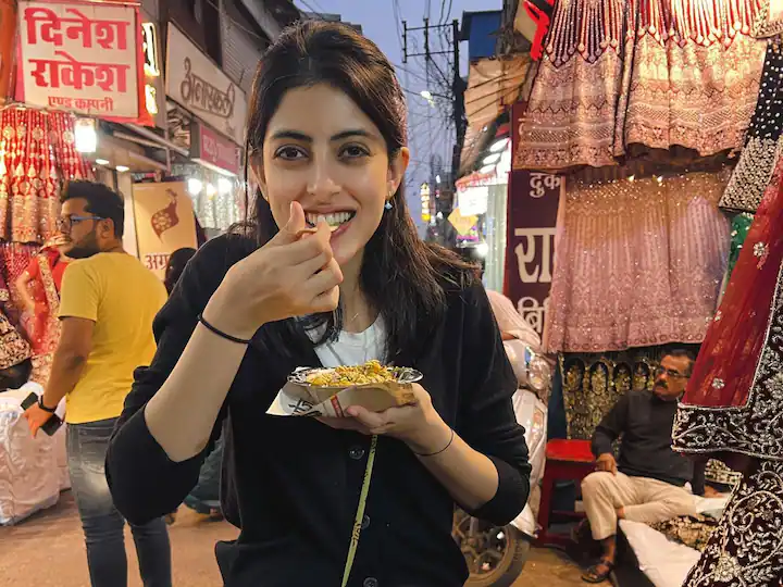 किसी तस्वीर में नव्या चाट-भेल खाती दिख रही हैं तो कहीं स्टॉल के बाहर बैठी हुई नजर आ रही हैं.