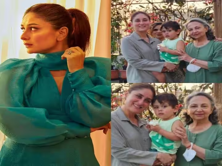 एक तस्वीर में तो करीना कपूर और उनकी सास शर्मिला टैगोर नजर आई. लेकिन इस तस्वीर में खास तो उनका पहनावा था. बता दें कि करीना और उनकी सास शर्मिला ने हरे कलर का आउटफिट पहना हुआ था.