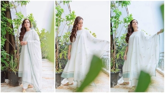 Dia Mirza looks like a vision in ₹23k ivory handwoven linen kurta set