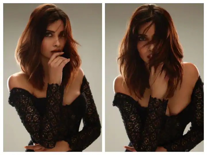 इस लेटेस्ट तस्वीरों में खुले बाल, ब्लैक ऑफ शॉल्डर ट्रांसपेरेंट ड्रेस पहन डायना इंटरनेट का पारा बढ़ा रही हैं.