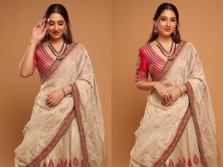 लेटेस्ट तस्वीरों की बात करें तो दिशा परमार ने क्रीम कलर का लहंगा पहना हुआ हैं, इस लहंगे पर पिंक और गोल्डन कलर से डिजाइन बना हुआ है.