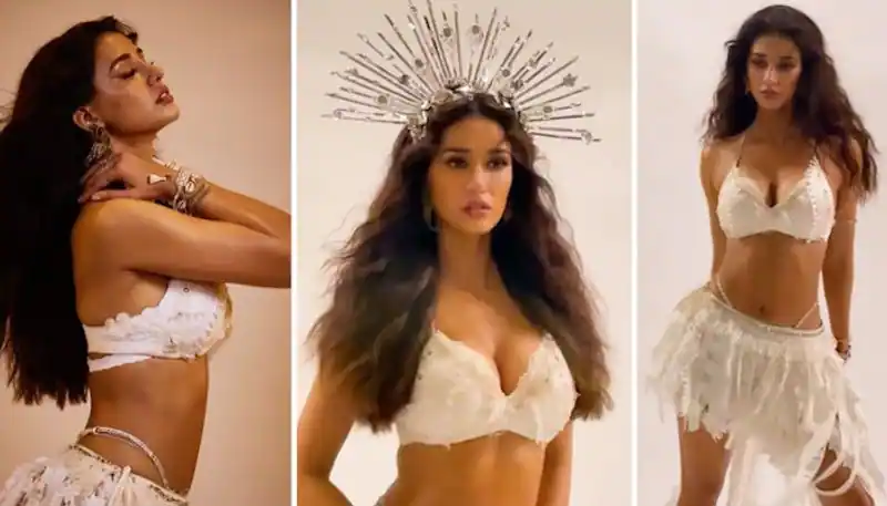 In the post that Disha Patani shared on her social media, she is seen wearing a white ensemble. Disha donned a white bikini top with a matching-coloured skirt.
