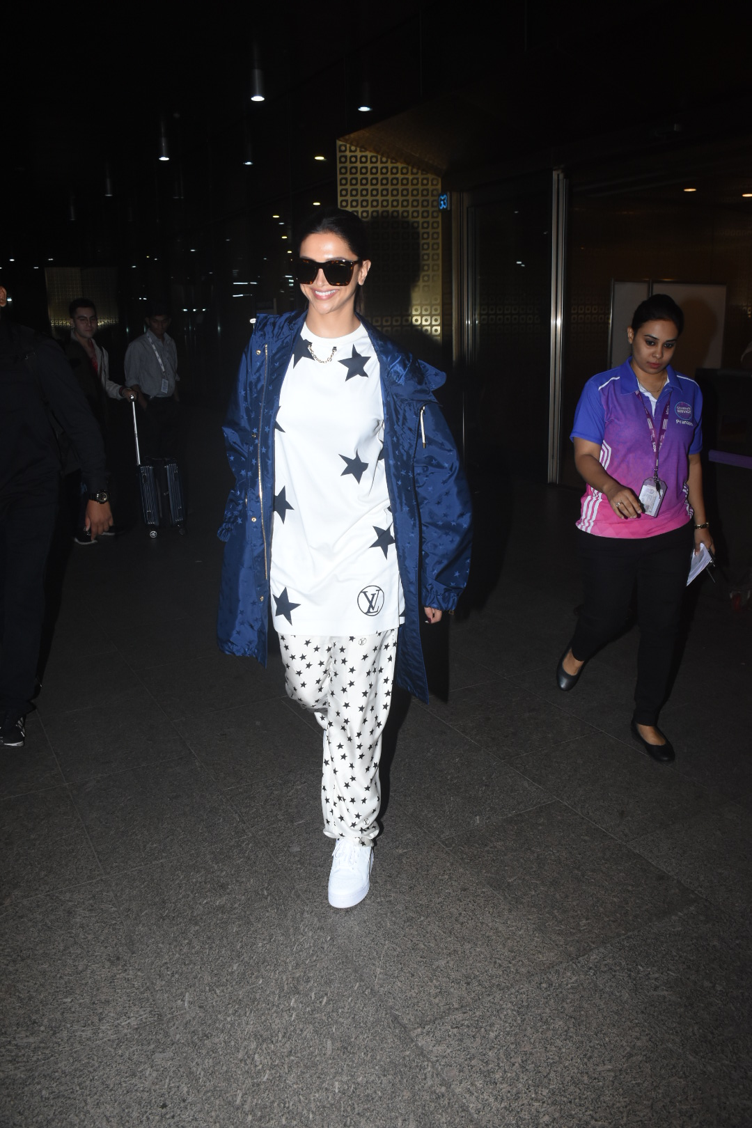 Deepika Padukone Steps Out Of Airport In Star-printed Pajama Set