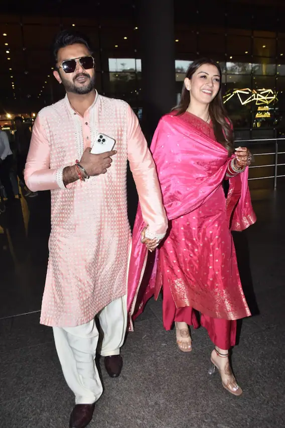 हंसिका मोटवानी और सोहेल कथूरिया मंगलवार को मुंबई एयरपोर्ट पर स्पॉट किए गए हैं. दोनों की शादी के बाद ये पहली पब्लिक एपीरिंयस हैं.