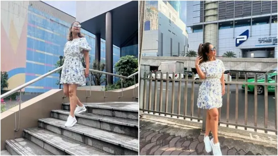 Hina looked stunning as ever as she decked up in a white floral summer dress featuring a closed neckline and short sleeves.