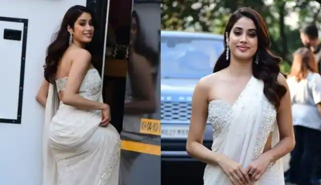 जाह्नवी ने इस मौके पर सफेद रंग की शिमरी साड़ी पहनी थी। इसके साथ उन्होंने स्लीवलेस ब्लाउज मैच किया।
