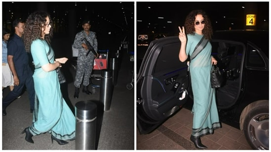 Kangana Ranaut was spotted at the Mumbai airport late Sunday night. She impressed her fans with her look in a simple saree and heels.