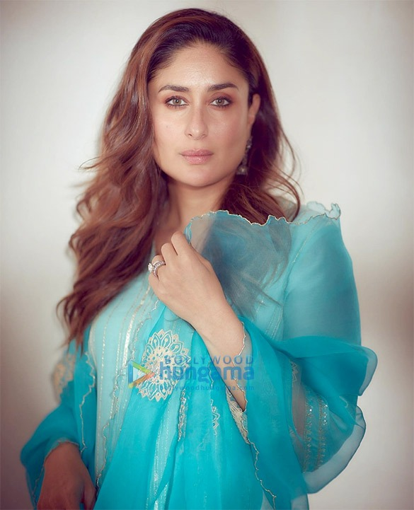 Kareena chose a silk organza suit set in a pleasing pastel blue tone for the promotional event, and it is a perfect summer festive pick.