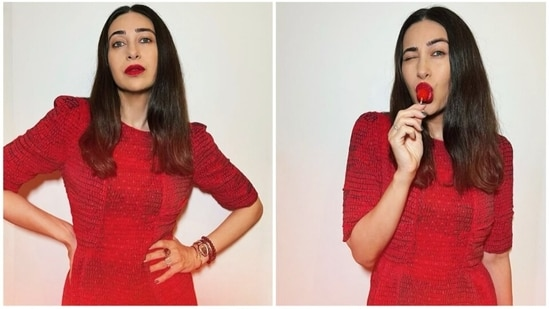 Karisma Kapoor added that extra spice to her pictures by posing with a red lollipop, matching with the theme.