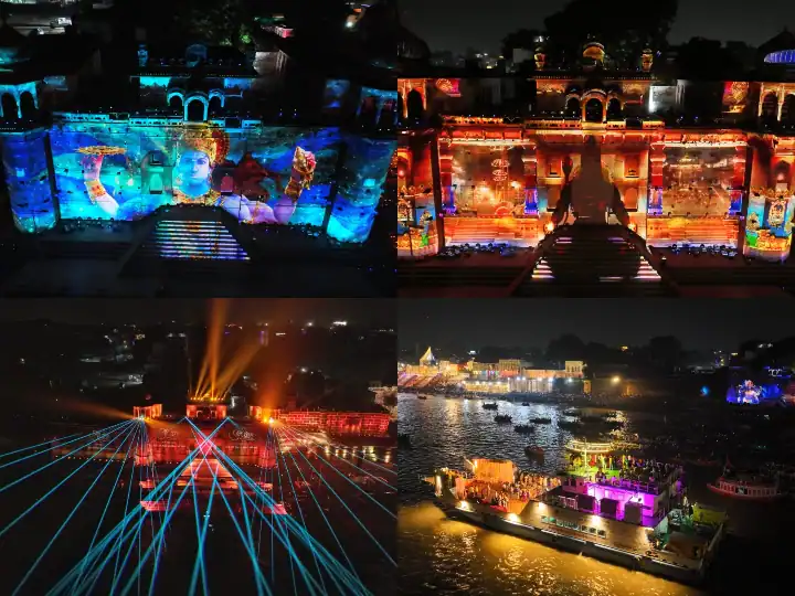 गंगा के पश्चिमी तट पर स्थित 84 घाटों पर करीब आठ लाख दीये जलाए गए हैं. साथ ही पूर्वी तट को भी करीब दो लाख दीयों से रौशन किया गया.