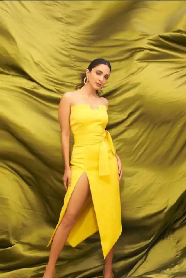 इन लेटेस्ट फोटोज़ में कियारा आडवाणी येलो कलर की थाई-हाई स्लिट आउटफिट में किसी हुस्न की मल्लिका से कम नहीं लग रहीं हैं।