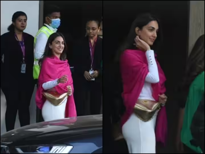 कियारा आडवाणी एयरपोर्ट पर ऑल व्हाइट जंपसूट में नजर आईं. इसके साथ उन्होंने पिंक कलर का एक शॉल भी कैरी किया था.