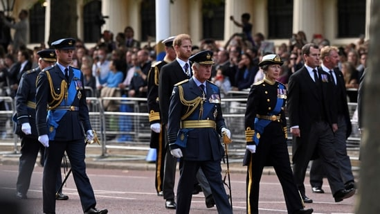 King Charles III, his siblings and sons Princes William and Harry joined a solemn procession to take Queen Elizabeth's coffin from Buckingham Palace to parliament.