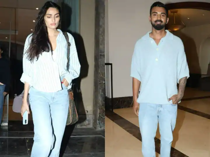 वहीं आथिया भी इस दौरान के एल राहुल के साथ ट्विनिंग करती दिखीं. उन्होंने ब्लू-व्हाइट शर्ट के साथ डेनिम जींस पहनी थी.