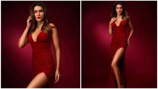 Kriti Sanon's gown features a plunging neckline and a slit that goes up to her thighs.