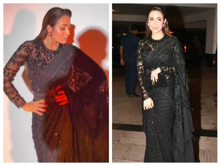 ब्लैक साड़ी के साथ नेट का ब्लाउज और सिंपल हेयर स्टाइल के साथ मलाइका का ग्लैमरस अंदाज़ भी देखने को मिला है.
