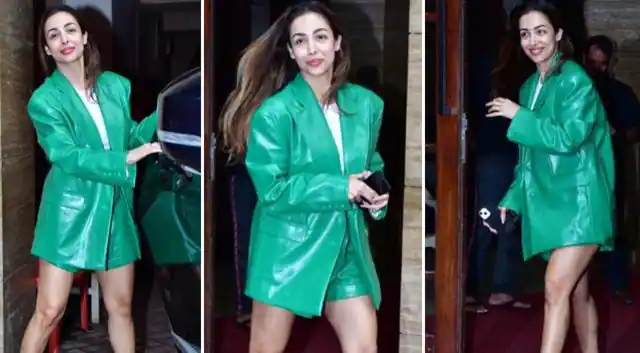 इन तस्वीरों में मलाइका अरोड़ा शिमरी ग्रीन ओवरसाइज्ड ब्लेज़र और शॉर्ट्स में काफी हॉट एंड सिज़लिंग नजर आ रहीं हैं, जिसके अंदर उन्होंने व्हाइट टीशर्ट वियर की है।