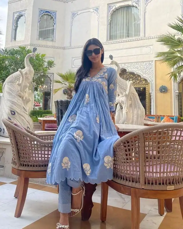 मौनी रॉय ने अपने ईज़ी-ब्रिज़ी अनारकली सूट-सलवार सेट में एक भव्य होटल के अंदर एक से बढ़कर एक पोज़ दिए।