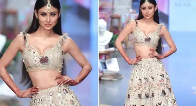 लहंगा सेट में रैम्प पर हुस्न का जलवा बिखेरती नजर आईं मौनी रॉय
