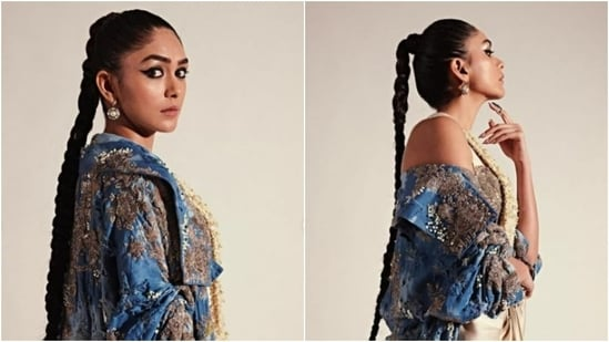 Styled by fashion stylist Mohit Rai, Mrunal wore her tresses into a long clean ponytail as she posed for the cameras.