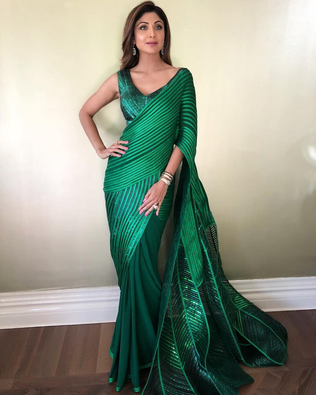 Looking ‘karisma-tic’ in this outfit is the fashion icon, Karisma Kapoor. The actor redefined grace with this peacock green maxi dress