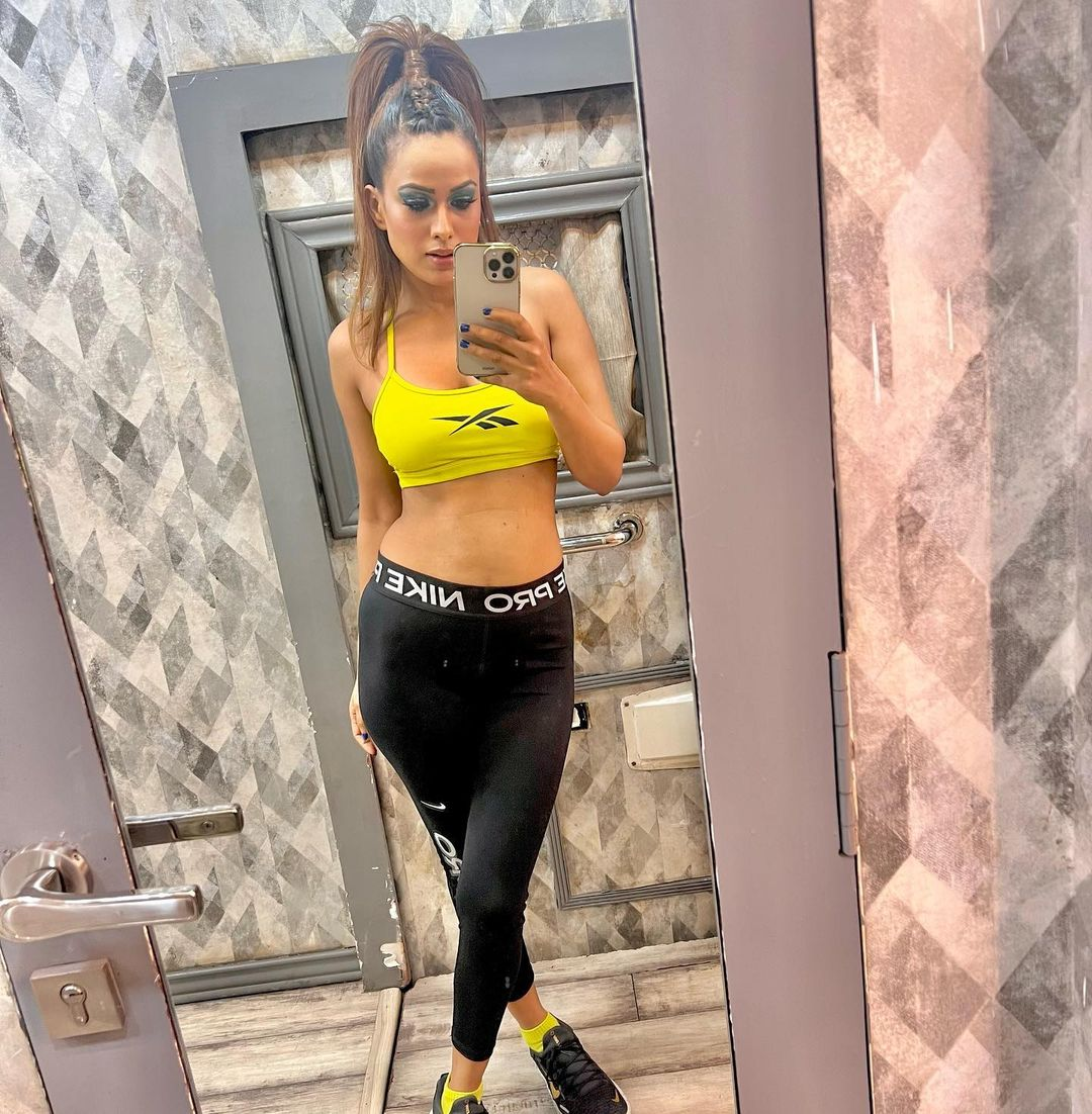 Nia Sharma is soaring temperatures in a yellow sports bra and black leggings.