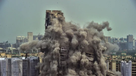 The twin towers, Apex and Ceyanne, in Noida’s Sector 93A were the tallest structures in the country to be demolished in a controlled implosion.(