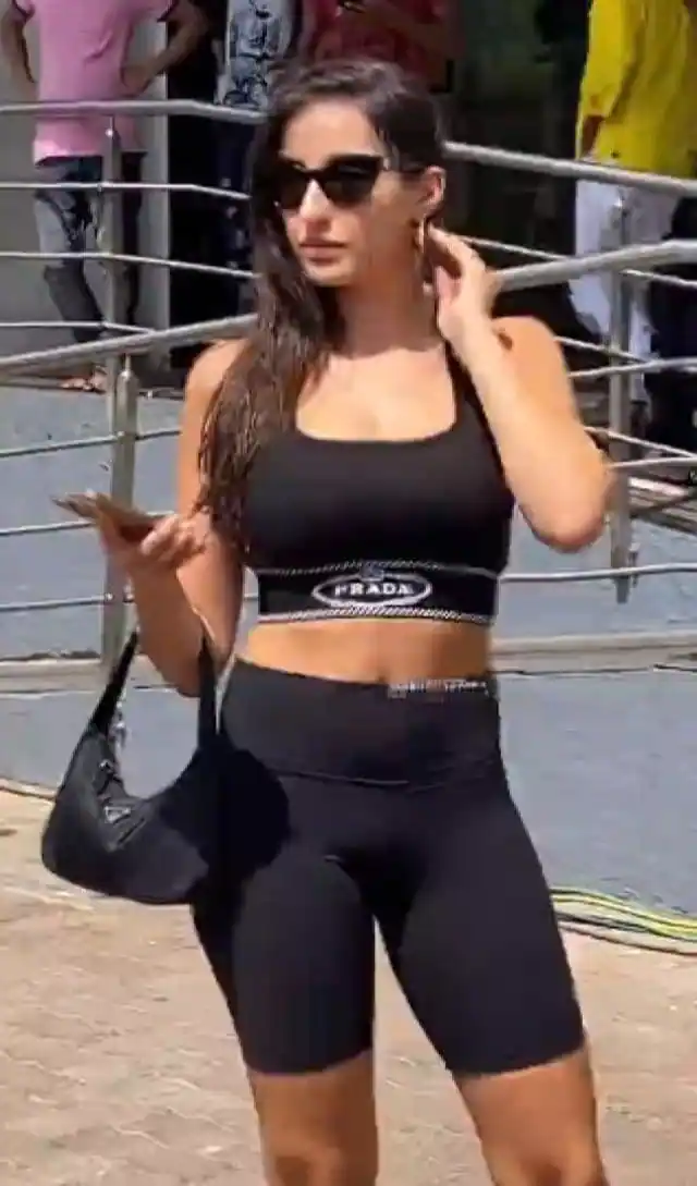 इस दौरान नोरा फतेही ब्लैक क्रॉप-टॉप और शॉर्ट्स में काफी कूल नजर आईं।