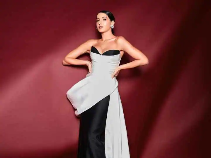 हाल ही में नोरा फतेही ने वाइट एंड ब्लैक ऑफ शोल्डर गाउन में अपनी खूबसूरत तस्वीरें दर्शकों के साथ साझा की हैं .