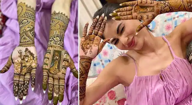 इन तस्वीरों में मौनी रॉय अपने हाथों में लगी खूबसूरत मेहंदी के डिज़ाइन को दिखाती नजर आ रहीं हैं।