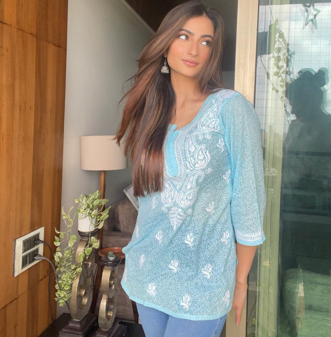 Palak Tiwari is seen wearing a blue color kurta and jeans in the photos. In which she is looking beautiful in Bala.