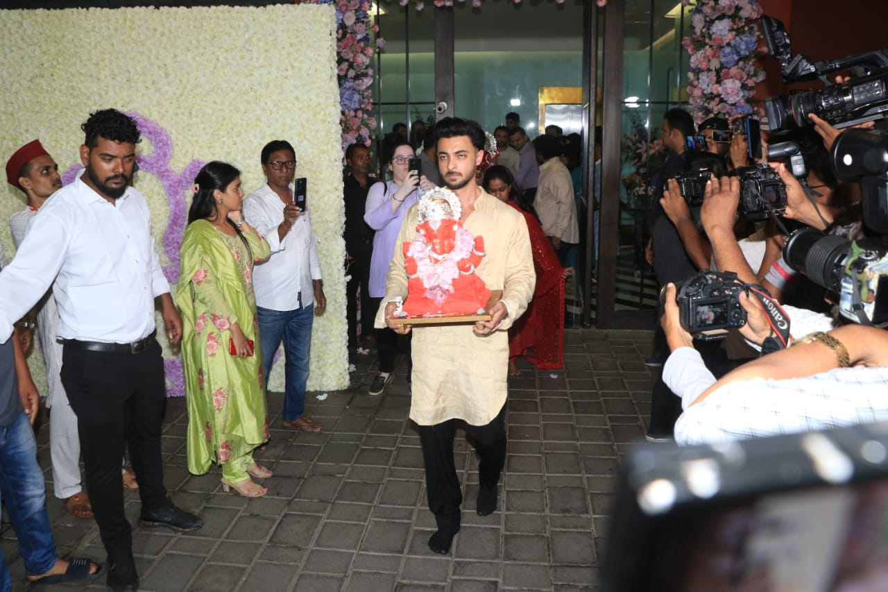 Angad Bedi and Neha Dhupia seen at Arpita Khan and Aayush Sharma's Ganpati celebration.