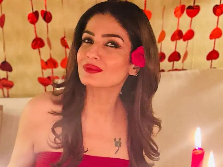 इतना ही गुलाब के फूलों और मोमबत्ती के साथ में रवीना टंडन अपनी कातिलाना अदाओं का जलवा बिखेर रही हैं.