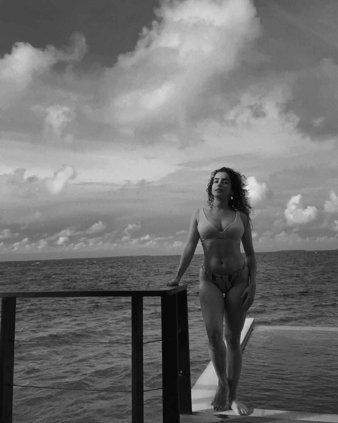Sanya Malhotra is burning up social media by posting a bikini-clad black and white photo. Actress flaunting her toned figure in stylish bikini.