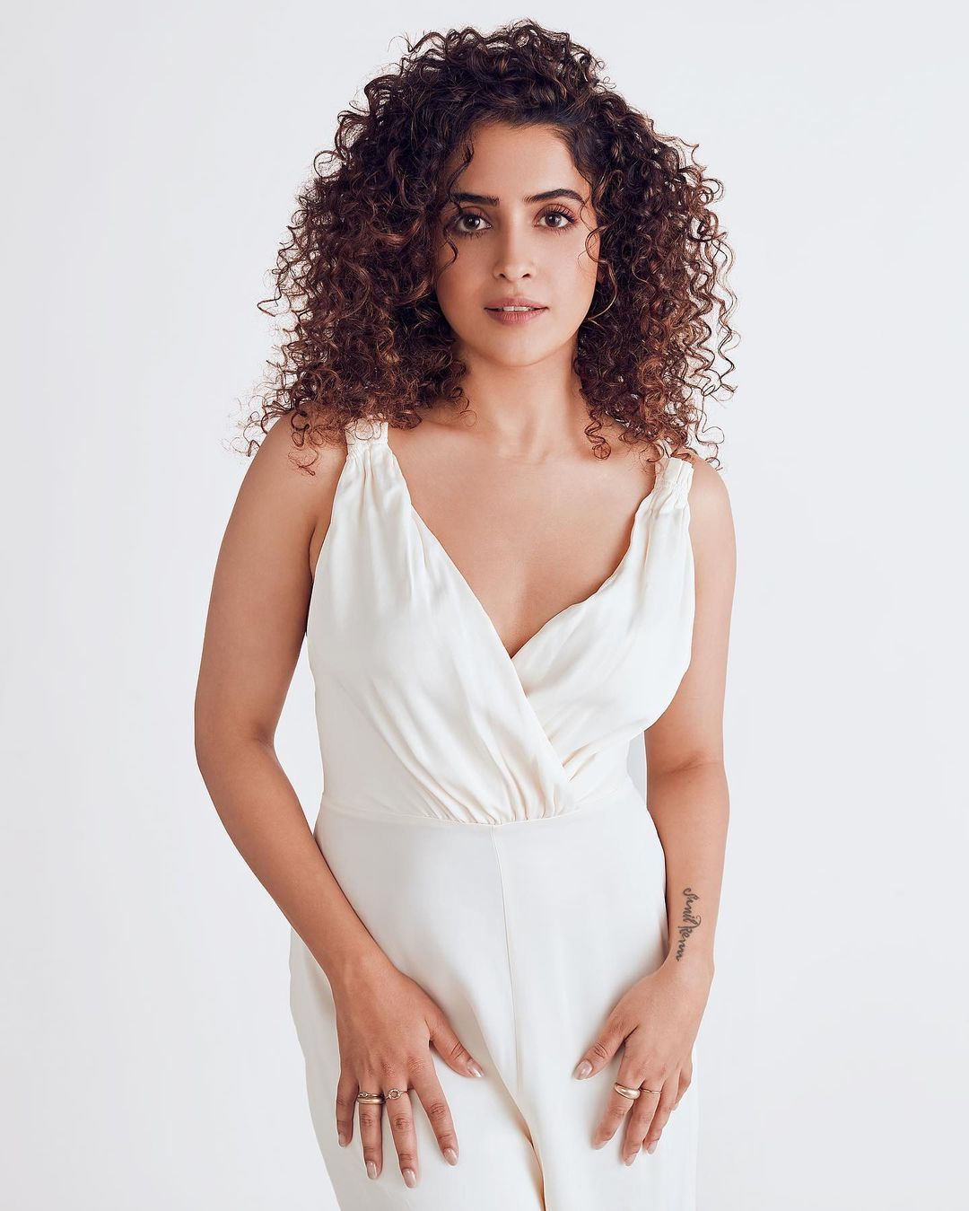 Sanya Malhotra is looking extremely chic and fashionable in a plain white jumpsuit in her latest photoshoot.
