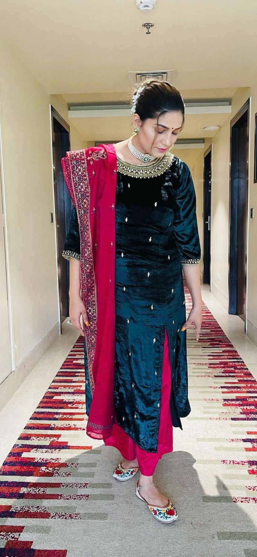 In the photos, Sapna is seen in dark green kurta and pink palazzo. With this, Sapna is carrying a pink dupatta.