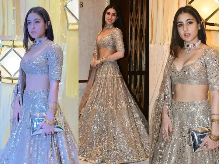 सारा अली खान के लुक की करें तो उन्होंने गोल्डन रंग का चमकदार लहंगा पहना था, जिसमें वह किसी राजकुमारी से कम नहीं लग रही थीं.