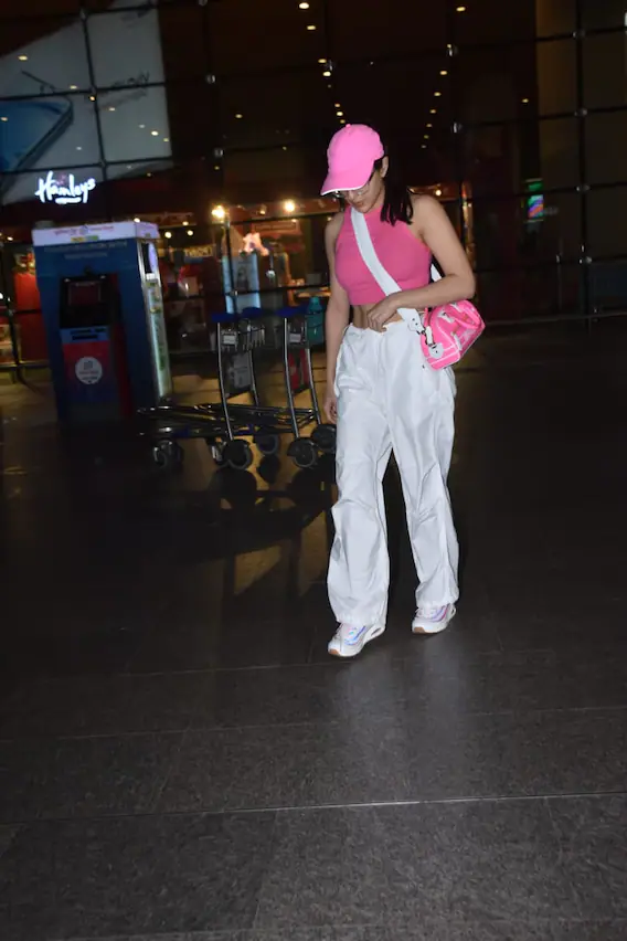 सारा पिंक क्रॉप टॉप और व्हाइट पैंट में एयरपोर्ट पर दिखीं. साथ ही अपने लुक को कंप्लीट करने लिए उन्होंने पिंक कैप पहन रखी थी और मैचिंग शूज भी.