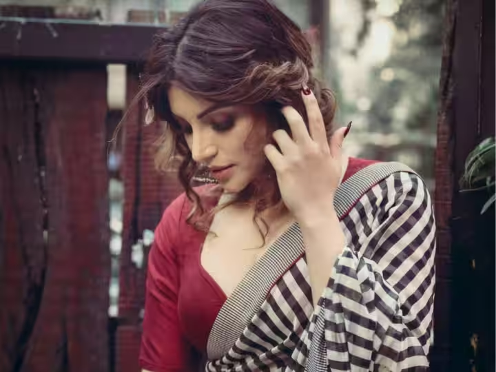 इस ब्लैक एंड व्हाइट स्ट्रिप साड़ी में पोज देती हुई शमा किसी अप्सरा से कम नहीं लग रही हैं. एक्ट्रेस ने साड़ी हॉट रेड डीपनेक ब्लाउज के साथ कैरी की है.