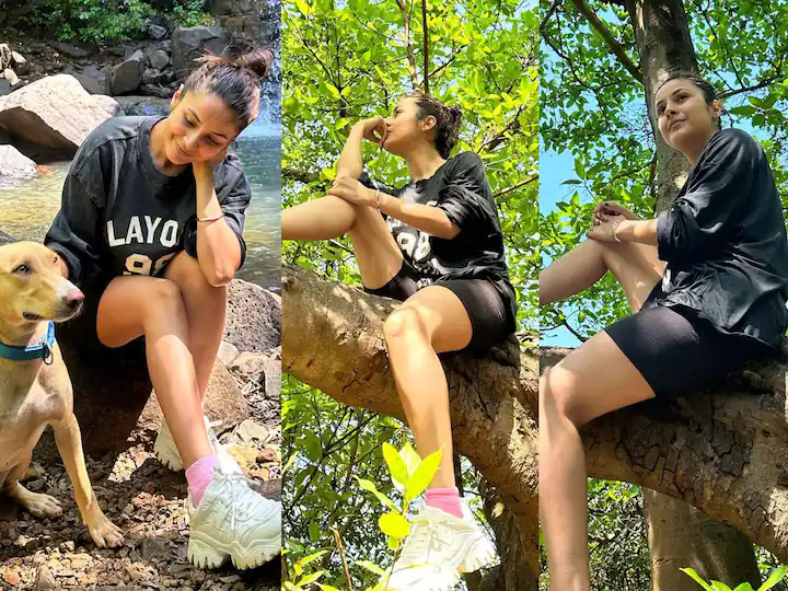 इस वेकेशन पर उनके साथ एक क्यूट पार्टनर भी मौजूद है. तस्वीर में आप देख सकते हैं झरने के किनारे बैठीं शहनाज के पास एक पालतू कुत्ता बैठा नजर आ रहा है, जिसे वह बड़े ही प्यार से निहार रही हैं.