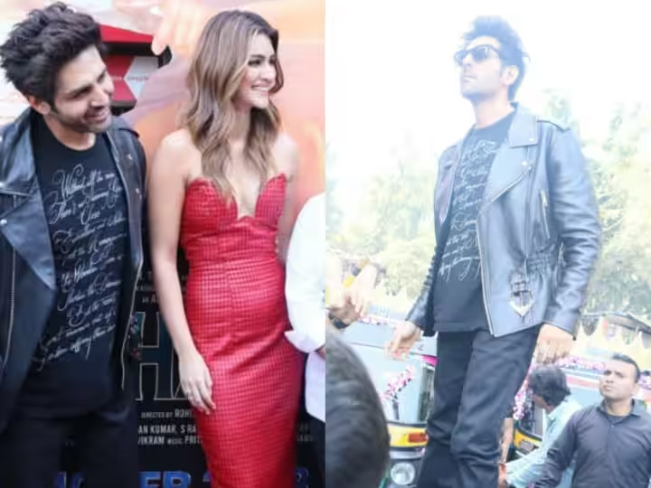 इस दौरान कार्तिन आर्यन ऑल ब्लैक लुक में काफी डेशिंग लगे. उन्होंने स्कूटर के ऊपर खड़े होकर कई सारे पोज दिए.
