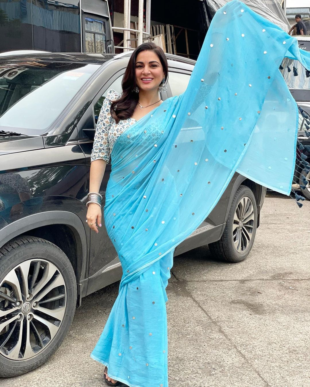 Shraddha Arya has now shared some photos on her Instagram account. In the photos, Shraddha is seen in a sky sari.